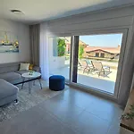 The apartment has a terrace, a living room, and a kitchen, and comforts such as an air conditioner. A highlight of the accommodation for guests is the presence of hairdryers, a shower cap, and bath sheets in the bathroom. A walk-in shower and a separate toilet can also be found.